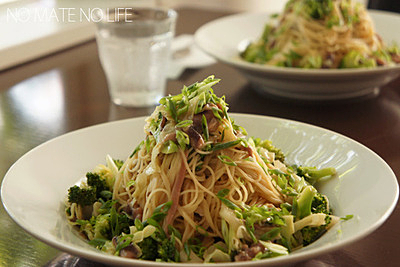 ■イカの塩辛とキャベツとブロッコリーの冷製カッペリーニ