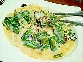 楽天レシピ:「しみじみ美味しい、蜆とほうれん草のクリームパスタ 」より