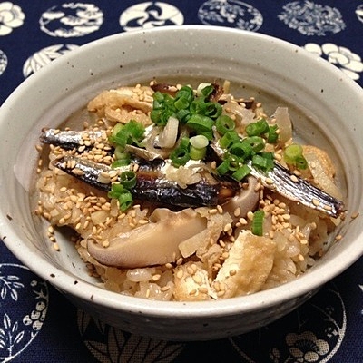 イワシの丸干しで炊き込みご飯