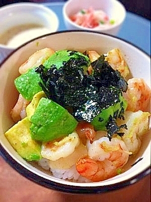 楽天レシピ:「プリプリまいう~!海老アボカド丼 」より