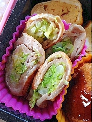 楽天レシピ:「【節約お弁当】豚肉のキャベツマヨロール♪ 」より