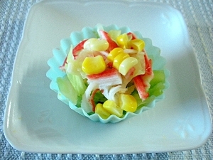 ■カニカマとキャベツとコーンの中華和え