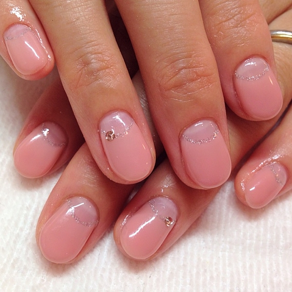 主張の強くない優しいピンクカラーで作るフレンチネイル。