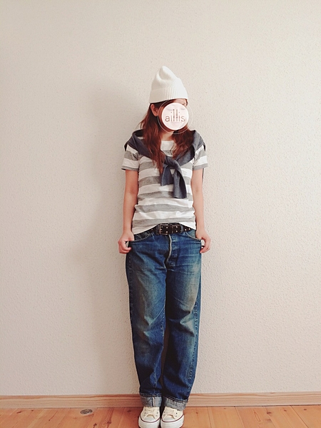 こちらはカーディガンにボーダー柄を持ってきたアレンジ。