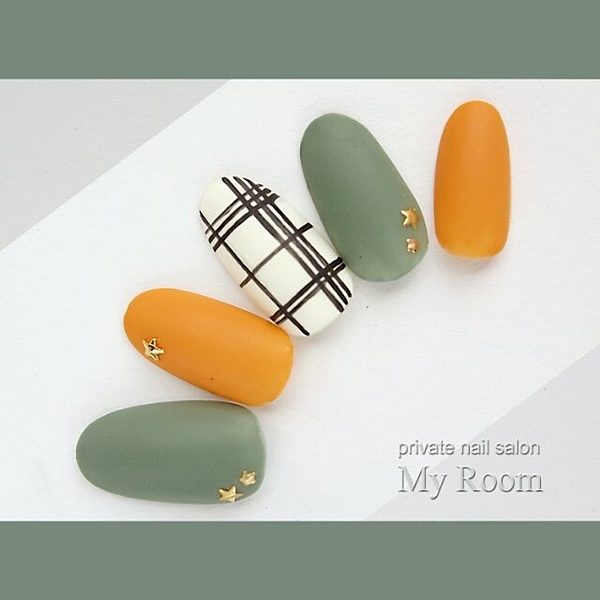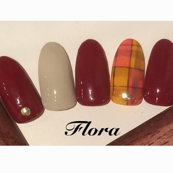 指先から秋色を取り入れて"派手すぎない"一押しカラー別チェック柄のネイルカタログ