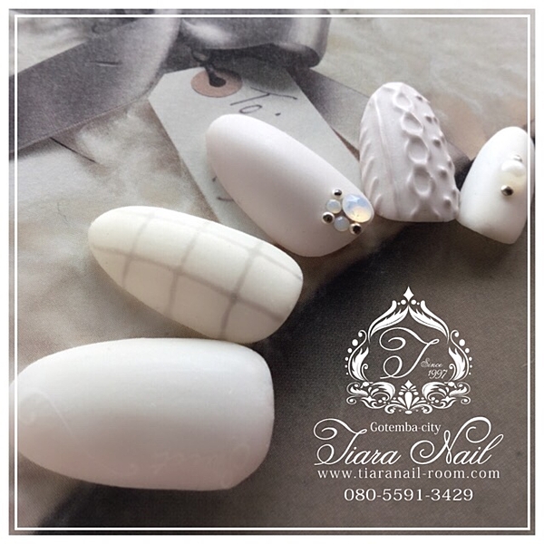 白がベースのツイードチェックでるんるん。パーツの中指もポイント。