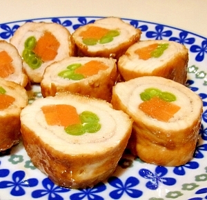 楽天レシピ:「いんげんと人参のお揚げ巻き煮 」より