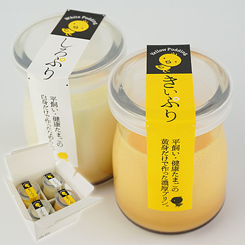 白身だけを使い、さっぱりと滑らかな「しろぷり」と、黄身だけで仕上げた濃厚で深い味わいの「きいぷり」。