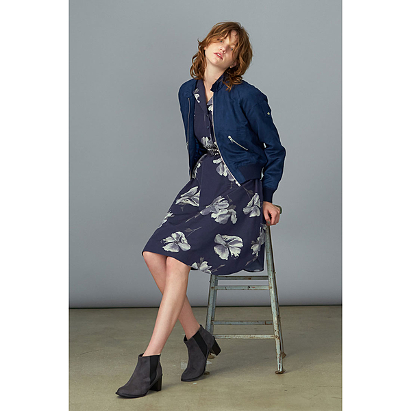 フラワーワンピースにブルゾンを合わせることで
