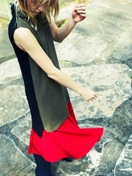 ミモレ丈スカートをレイヤード。