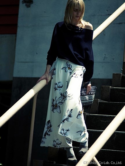 ロングスカートを合わせたスタイルも素敵。