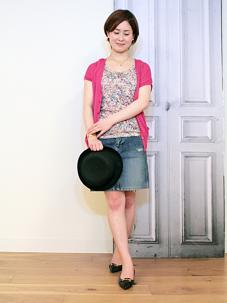 デニムスカートと合わせてナチュラルコーデの完成です。