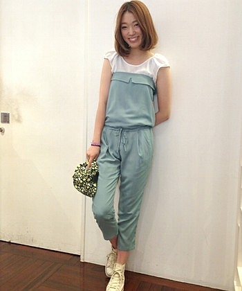 淡い色で柔らかさも加わり、フェミニンに着ることができます。