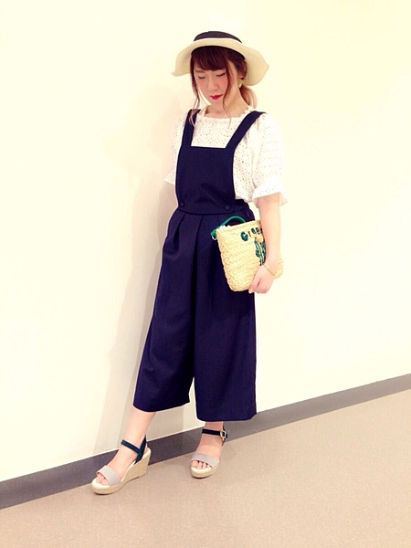黒のボトムと黒のハットを合わせることで全体を引き締めています。