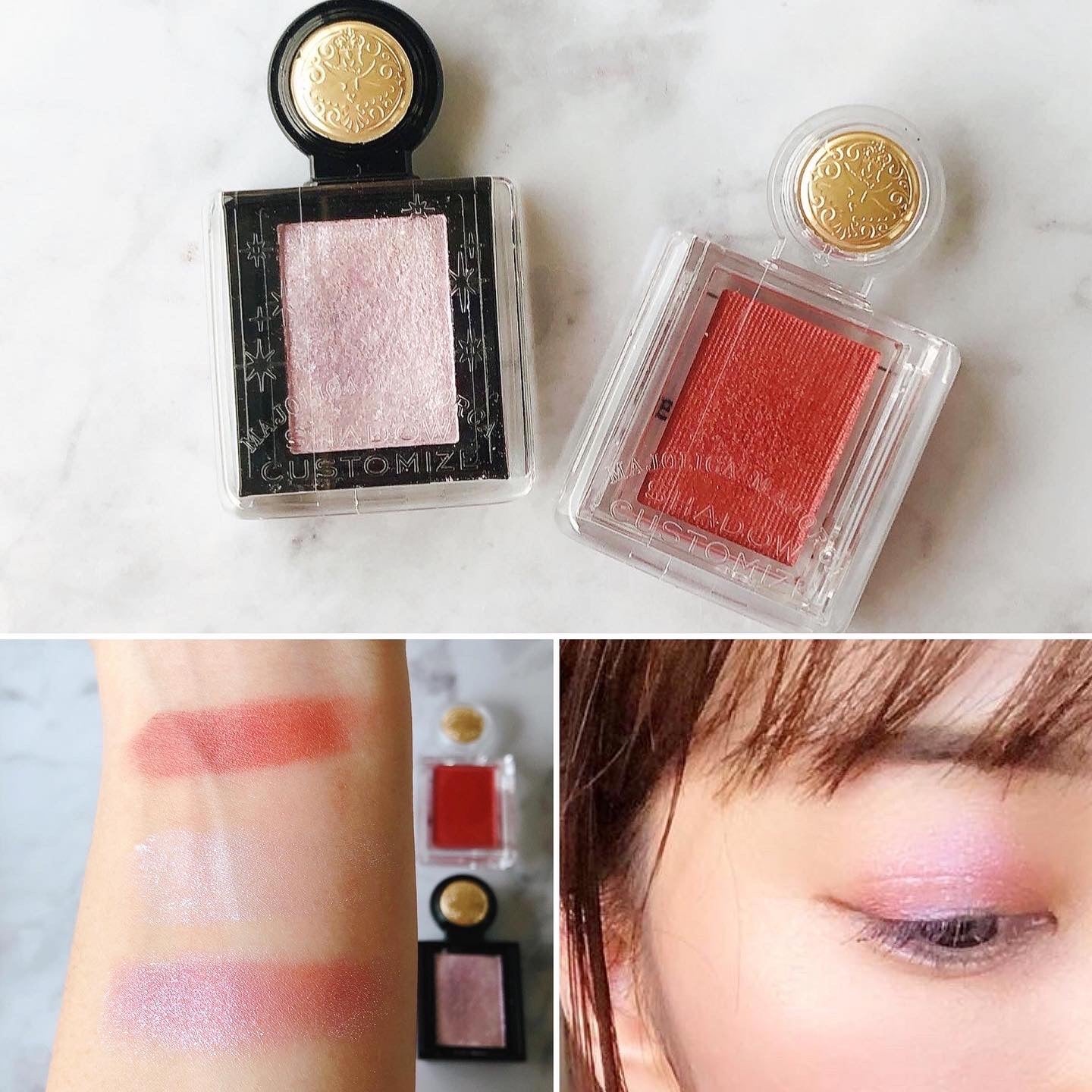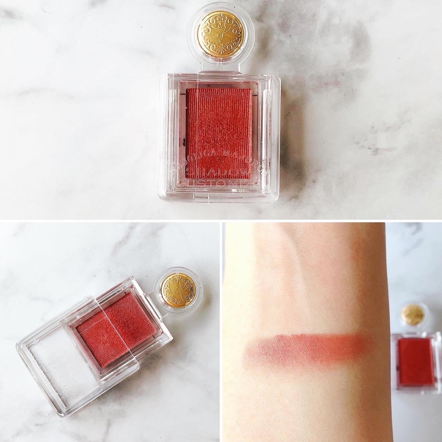 単色でも可愛いのですが、おススメは通常のシャドーカスタマイズとの重ね使い。メインビジュアルでの浜辺美波さん使用色の、先ほどご紹介したRD303とVI101との組み合わせがすごく気に入っています。