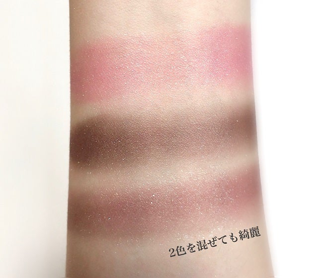チャイティーローズはこのシリーズで1番トレンド感のあるカラー。締め色が入っていないのに目元にまとまりが出て最旬顔になれちゃいます。真ん中のラメは大粒で、まさに宝石級ですよ!