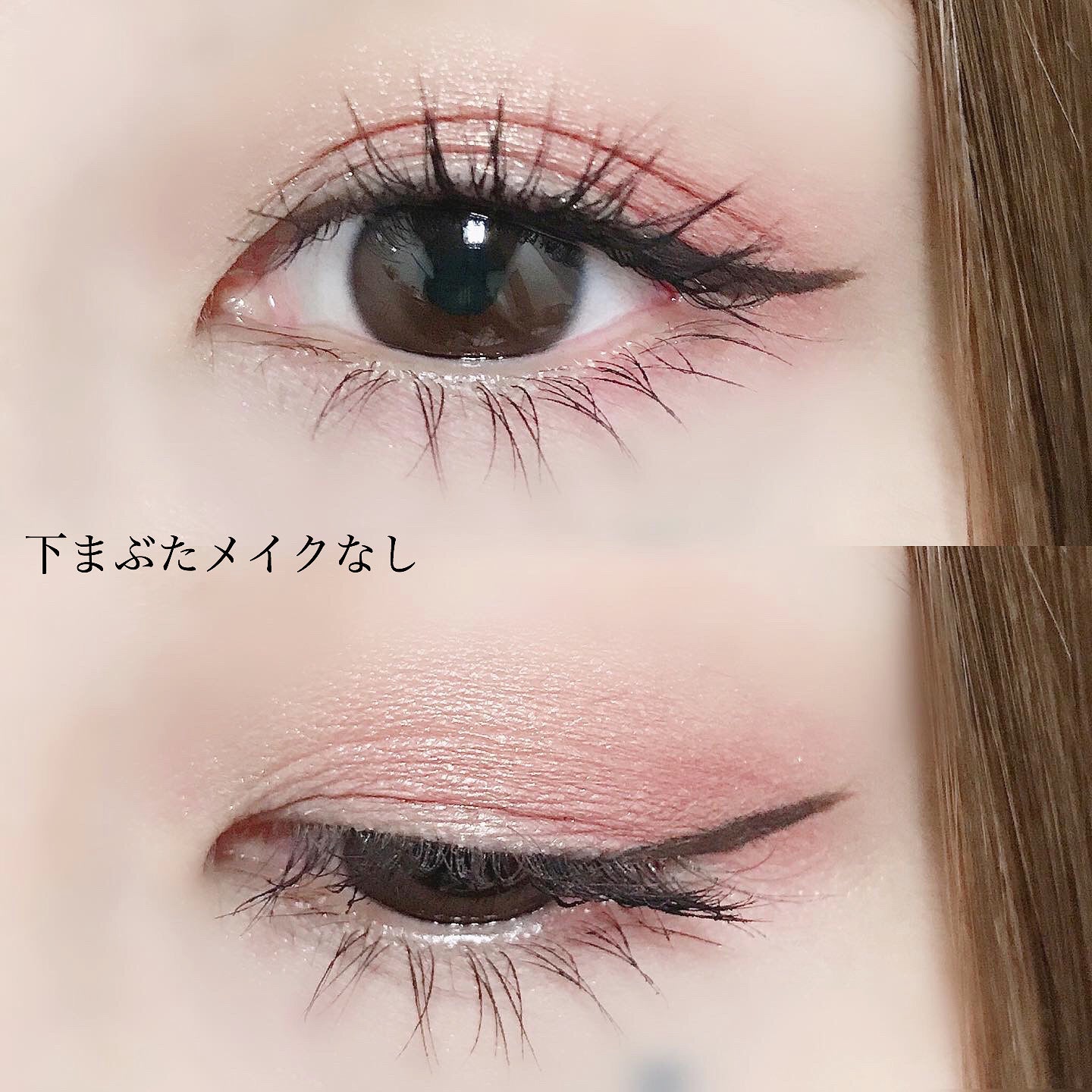 まず、下まぶたに色を乗せてないメイクを見てください。