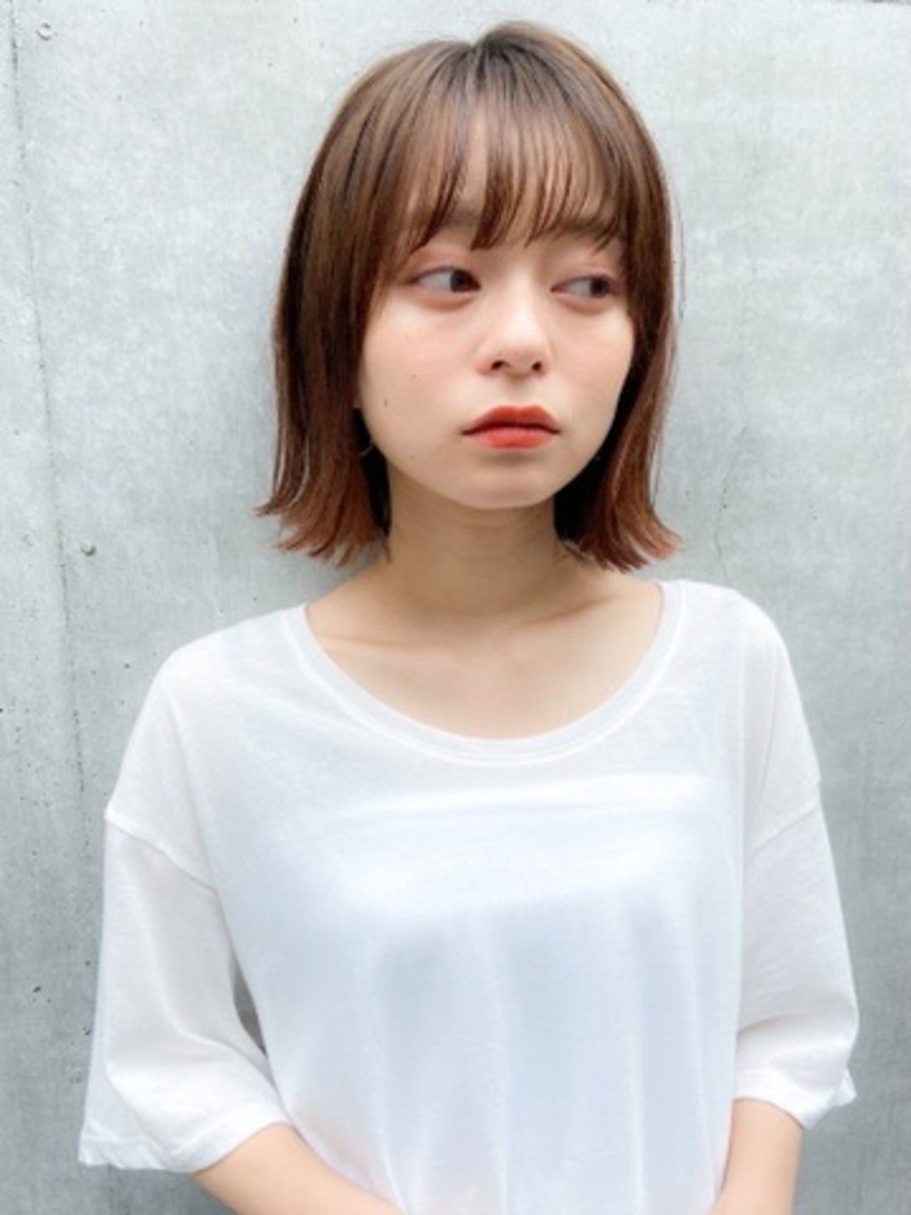 トレンドの切りっぱなしボブは小顔効果を発揮し、ウェット感をプラスすることでクールな印象で、暑い夏も涼しげに過ごせそうですね。切りっぱなしボブはスタイリングも楽なのでおすすめです。