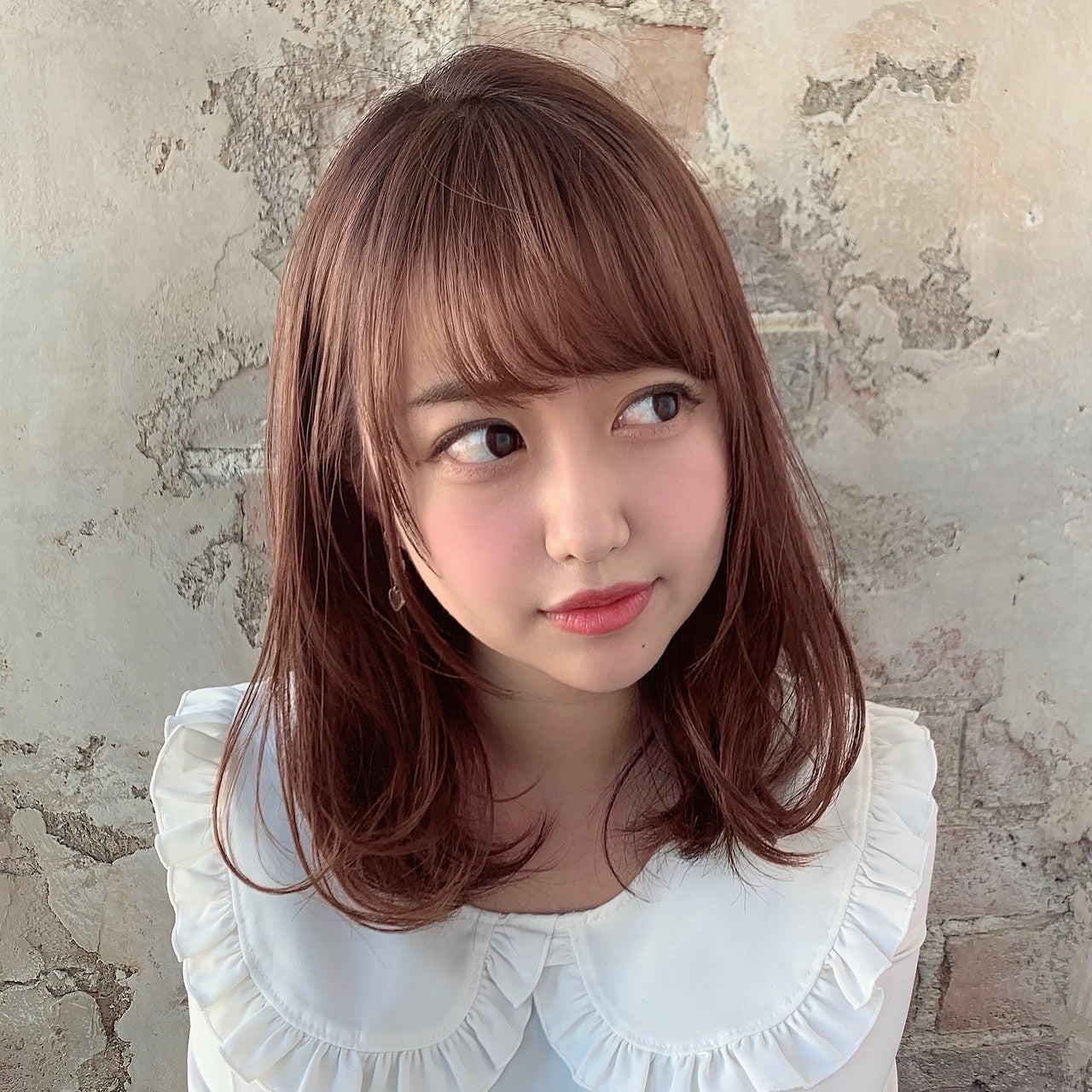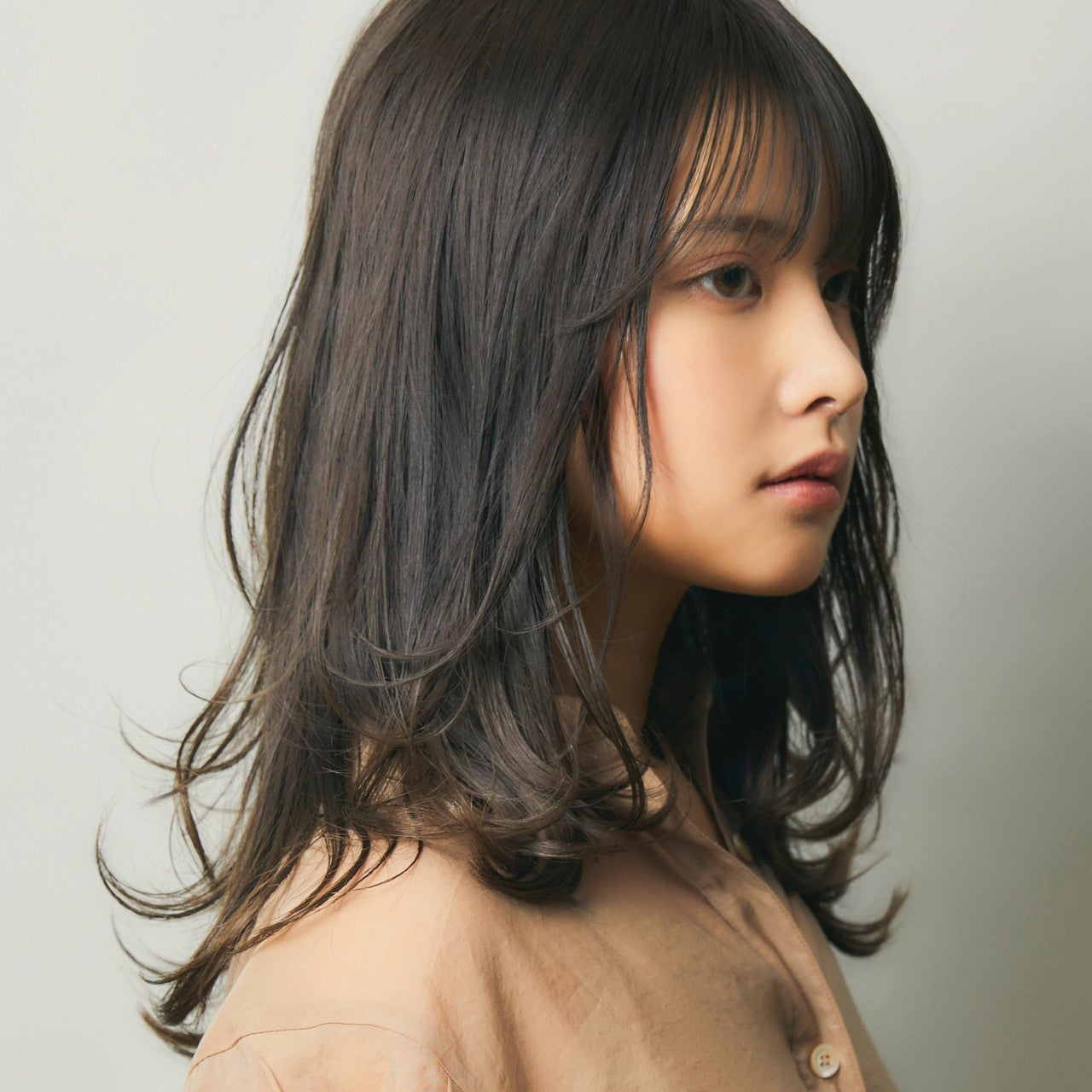 女子力高めのワンカールミディアムは、重めのミディアムにレイヤーを入れて毛束感を残しながら、隙間が出るようカット。流し前髪も涼し気で、アレンジもしやすい万能スタイルです。