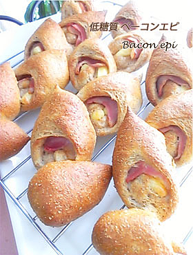 ■HBで作る強力粉100%のチーズ入りベーコンエピ