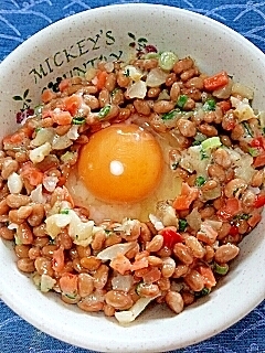 楽天レシピ:「納豆の食べ方-生玉子&ピクルス三昧♪ 」より