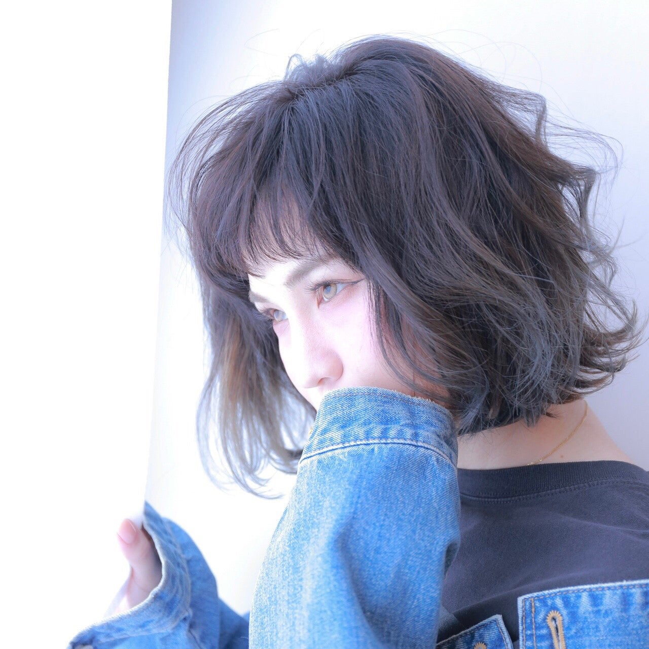 旬のバイヤレージュを取り入れた、寒色系ヘアカラーも素敵です。光にあたると寒色ヘアカラーがキラキラ光って素敵見せができます。