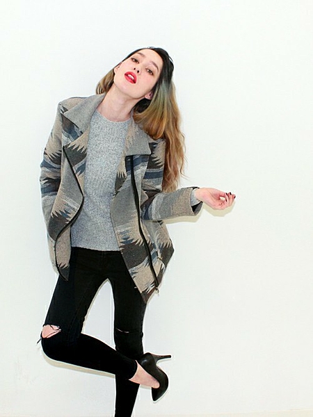 ネイティブ柄がとても個性的な印象なので、シンプルなコーデと合わせてもばっちり◎