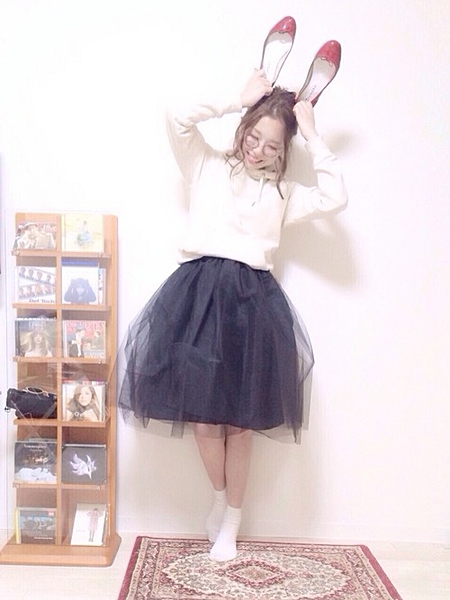 ふわふわのチュールスカートの相性は抜群。