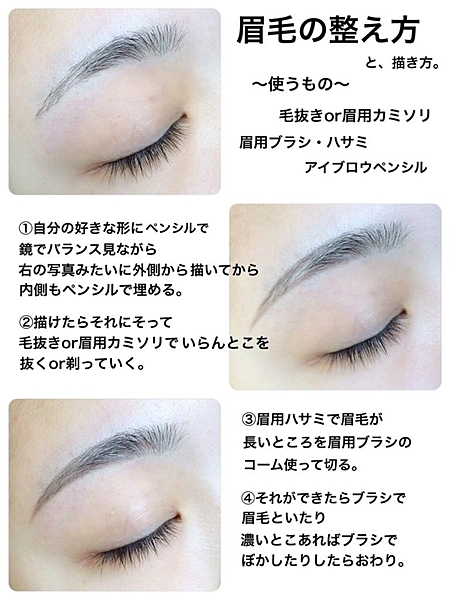 ナチュラル眉の秘訣1つめは、まずは元の眉毛(自眉毛)をちゃんと整えること。