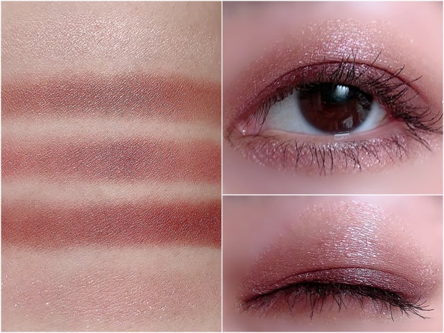 特に真ん中の繊細なラメが可愛く、下まぶたに入れると瞳が潤んで見えます。