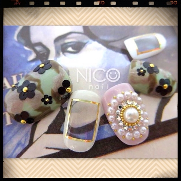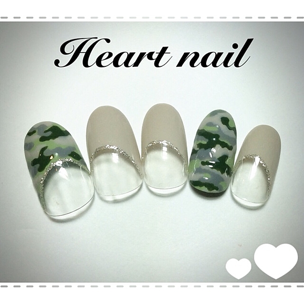 カモフラ柄をフレンチネイルで。
