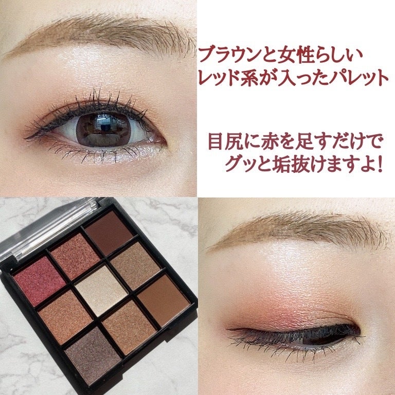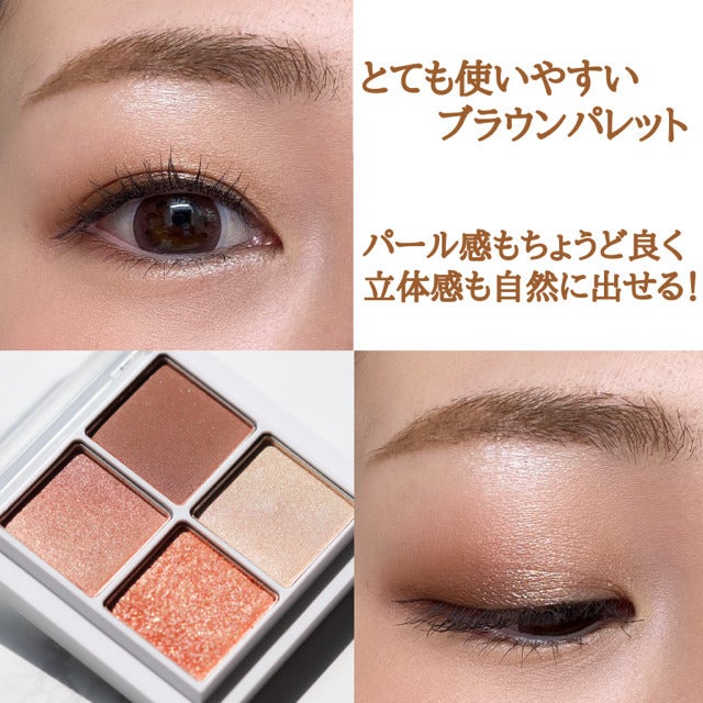 明るすぎず暗すぎず、万人受け間違いなしのブラウンパレット。細かいラメが立体感ある目元にしてくれます。