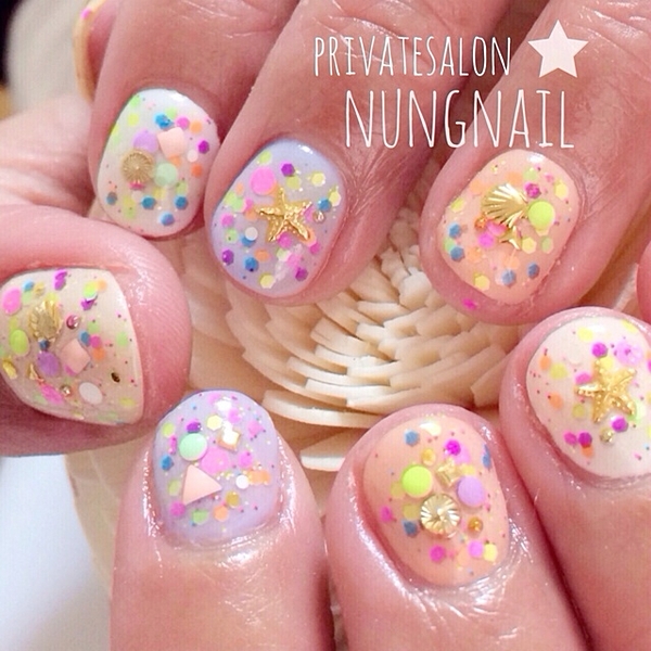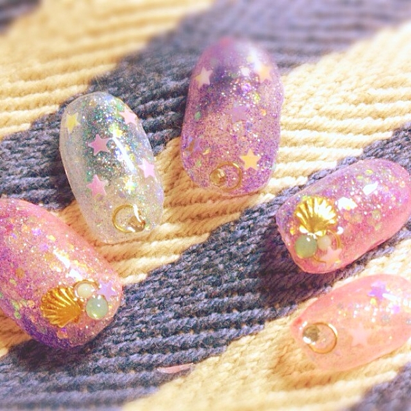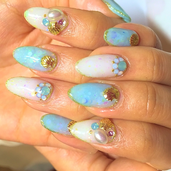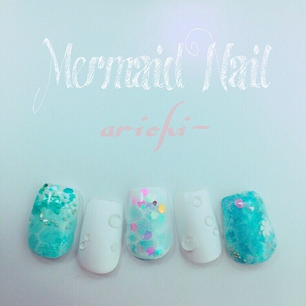 人魚姫を連想させるようなステキなデザインのネイルデザイン