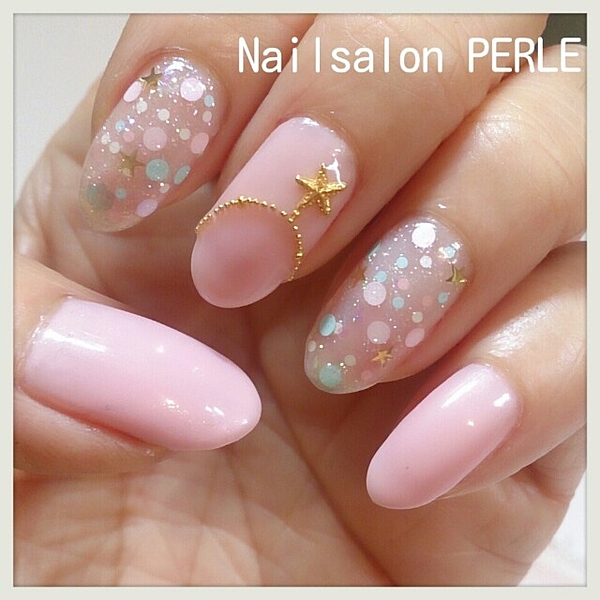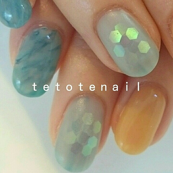 ホログラムのキラキラ感と、透け感が夏らしいホログラムネイル。まる、星、ハート、様々なモチチーフのあるホログラムにはかわいらしさがいっぱい!そんな、ホログラムネイルのネイルデザインをご紹介します!