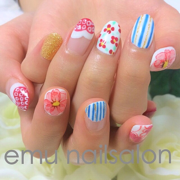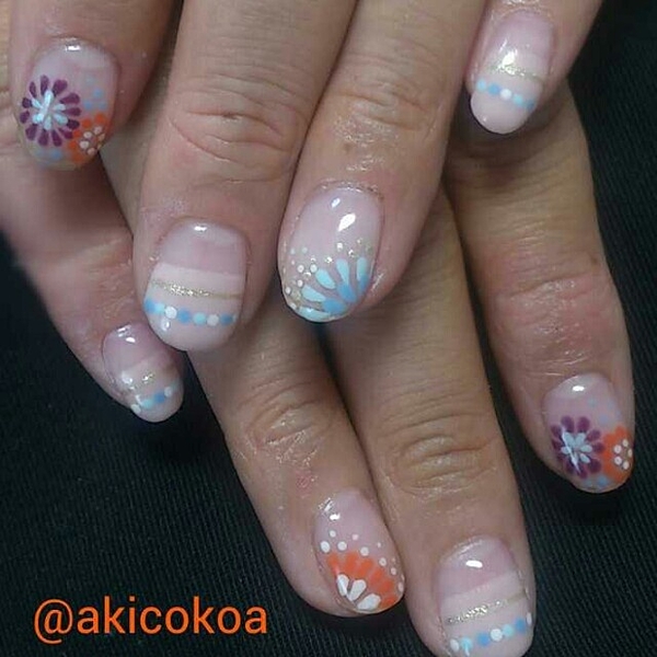 夏らしく、見てるだけで爽やかなネイルですね。