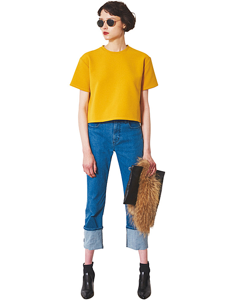太めにロールアップしたデニムに