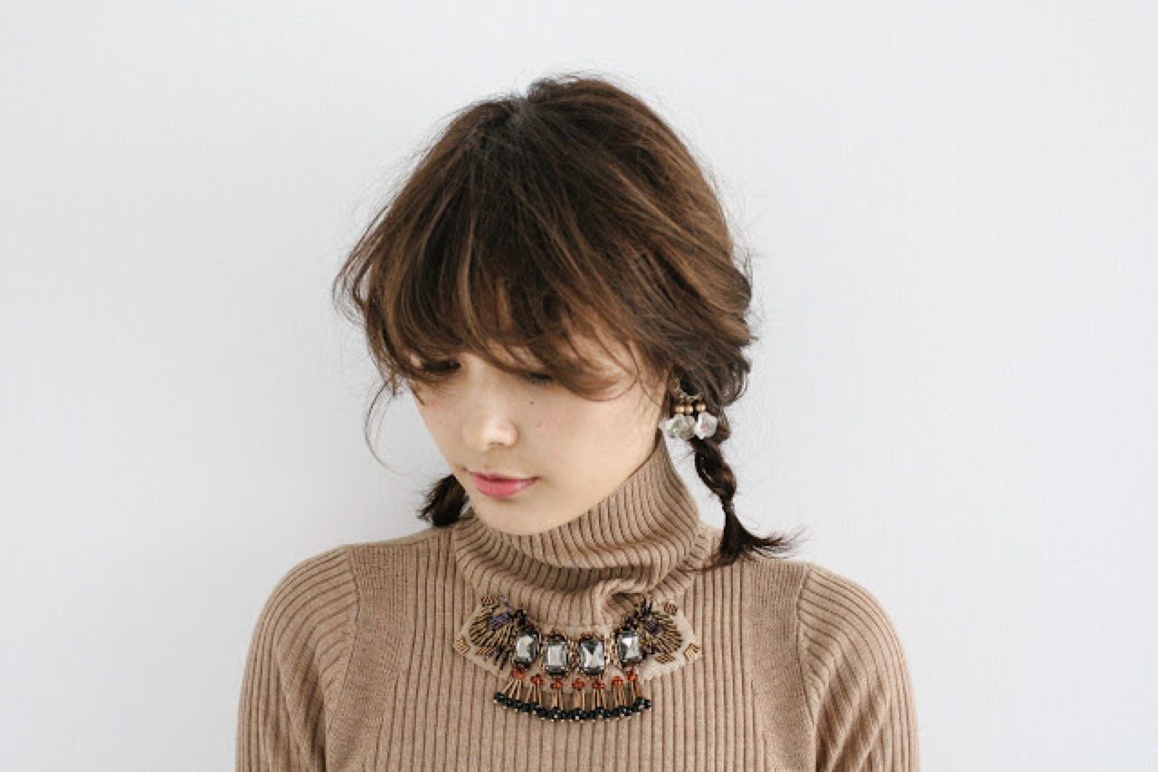 長さが中途半端でポニーテールもできない。という人にはうってつけ!トップから軽く編み込みツインをして軽く引き出してあげれば地味見えしない元気っぽアレンジに。