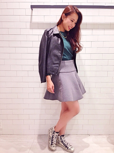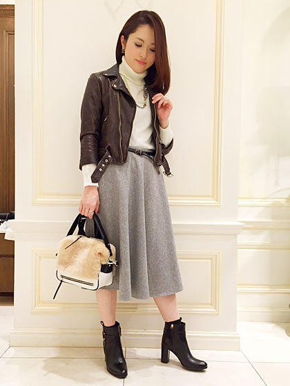 レザースカートは上級者アイテムですが、
