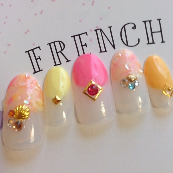 たくさん遊べるのが嬉しい♡ 変形フレンチネイルデザイン