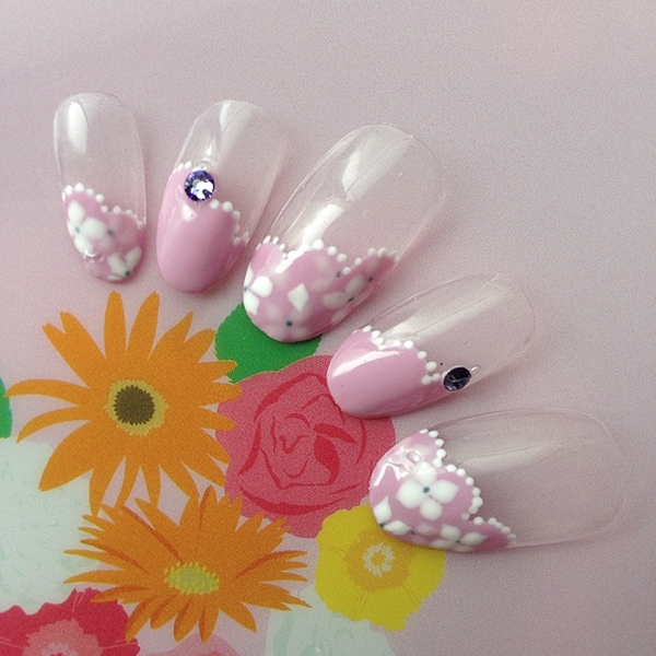 シアーホワイトとピンクが柔らかい印象になってます♪