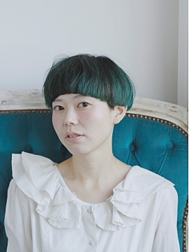 マッシュショートに深いグリーンが