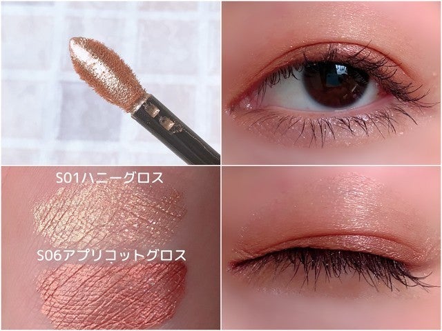 写真は『S01ハニーグロス』と『S06アプリコットグロス』。大きめのチップで塗りやすく、2色だけで簡単に綺麗なグラデーションを作ることができます。