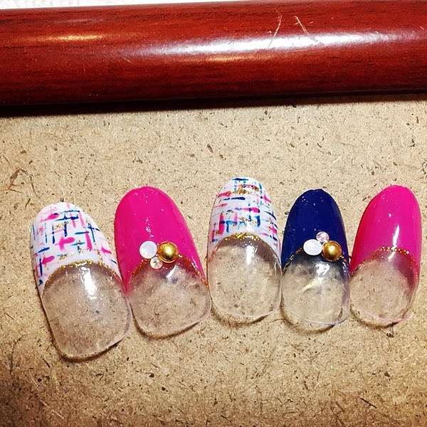 ツイードネイルをピンク系と合わせると、とても可愛く仕上がります。お洋服とコーディネートをしてみると、ツイードネイルの可愛さをもっと楽しもう!
