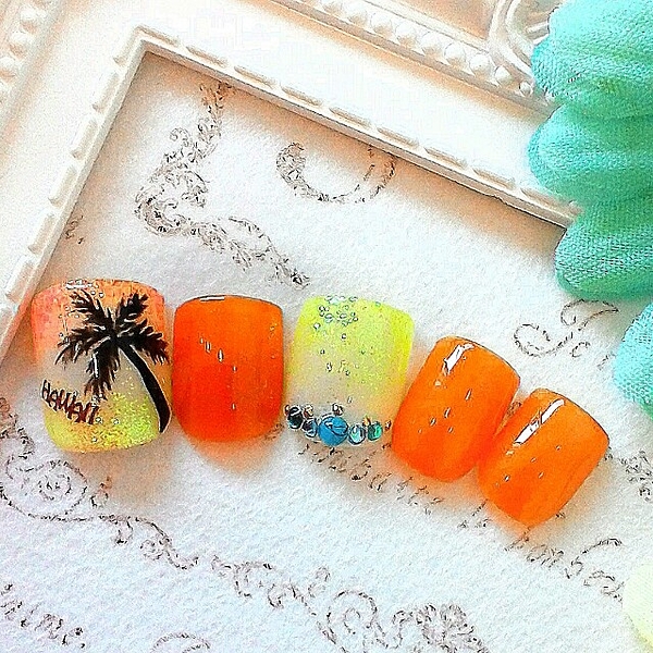 イエローをプラスして、ビーチにぴったりの明るいデザインに♪