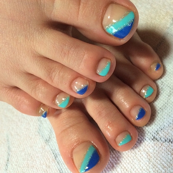 親指の爪が真っ二つに折れ(´Д` )補修&海をイメージした逆フレンチシェルとパールでキラキラ✨ #フット#ネイル http://t.co/Sfy7ql6XzR