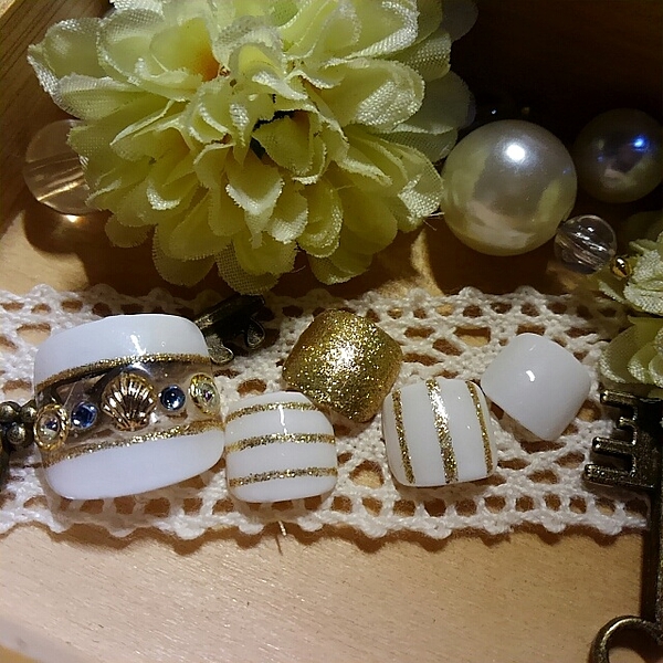 ホワイトのシンプルベースにのせるだけでも、華やかなマリンネイルが出来ちゃいます♪