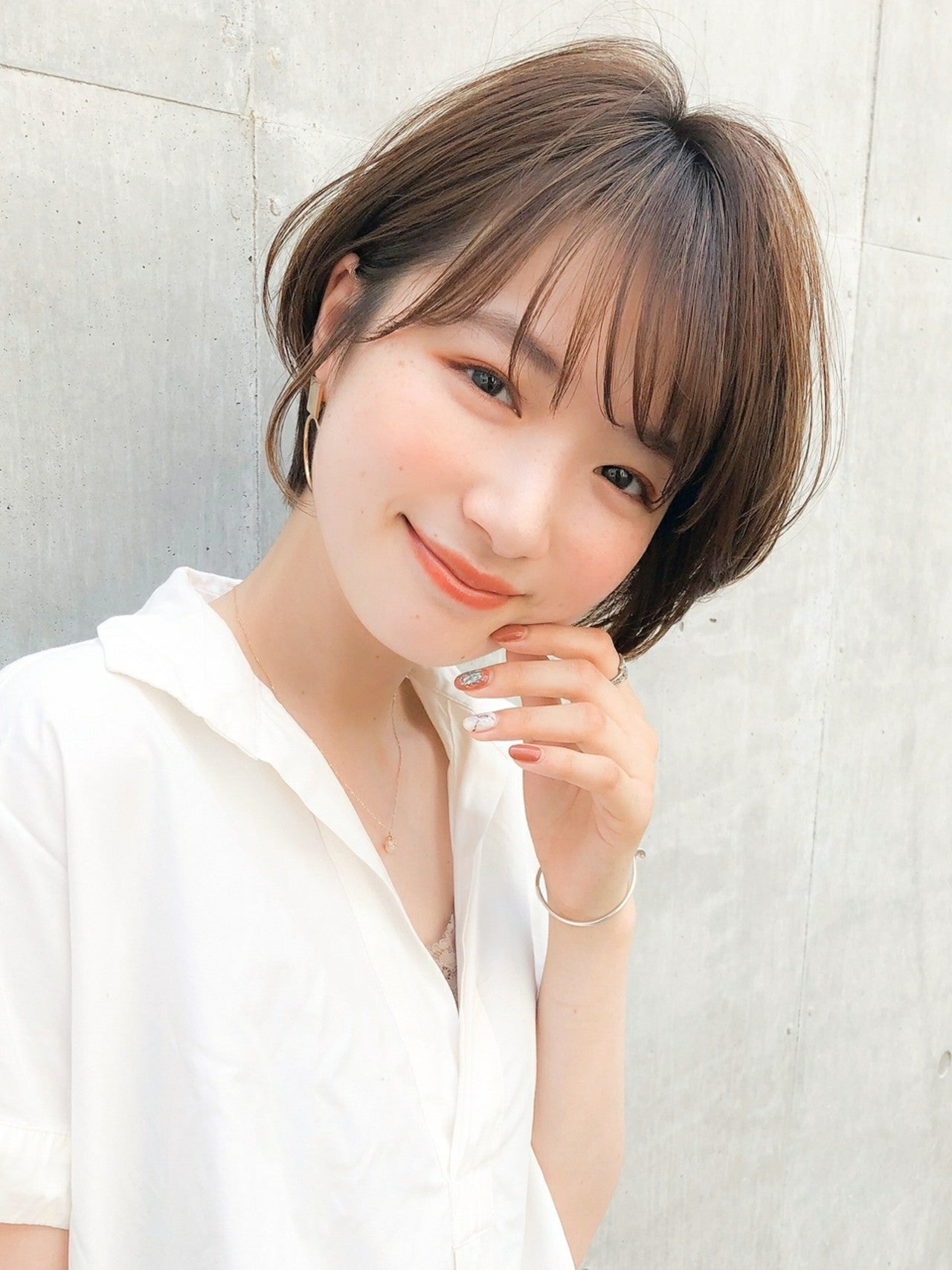 ひし形シルエットのショートヘアは、トップからふんわりと柔らかなボリュームが出やすいショートヘアです。小顔効果も期待できます◎。