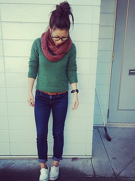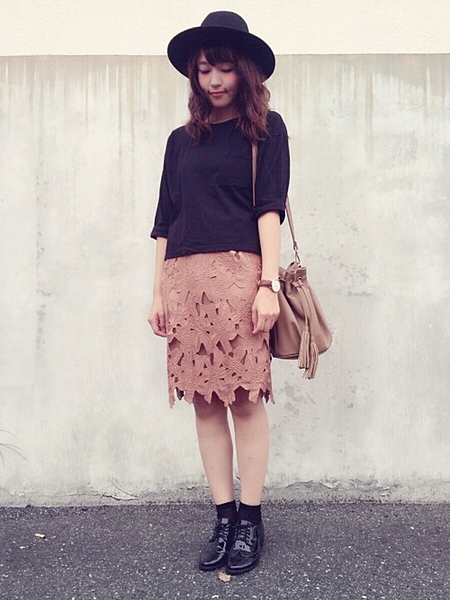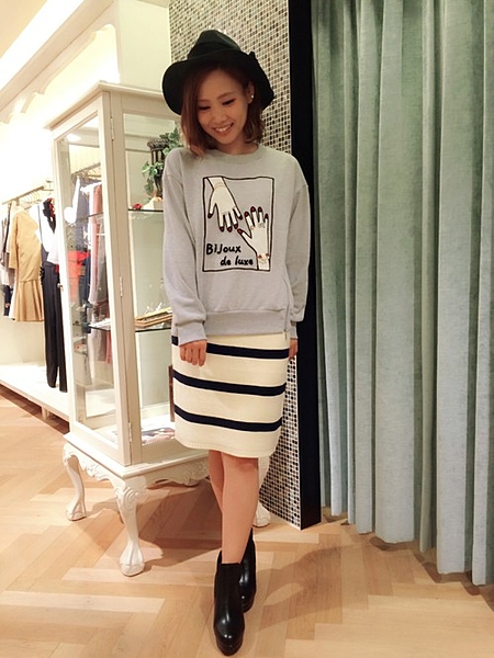 個性的なセーターとタイトスカート