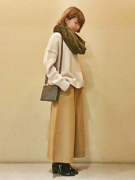 今年大流行のガウチョパンツ×ニット