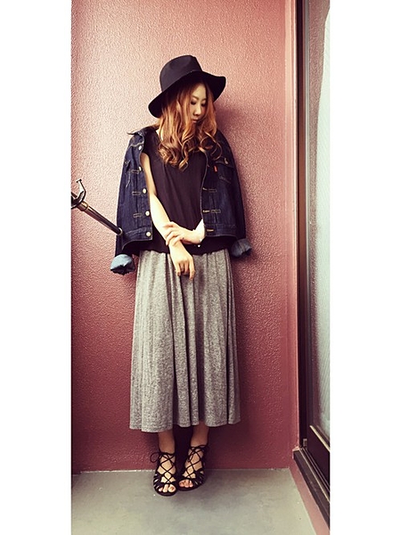 カジュアルコーデに女優ハットを